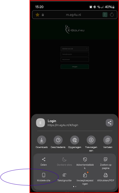 - dan gaat u naar de browser van uw telefoon en u typt in: m.eg4u.nl